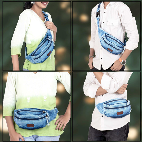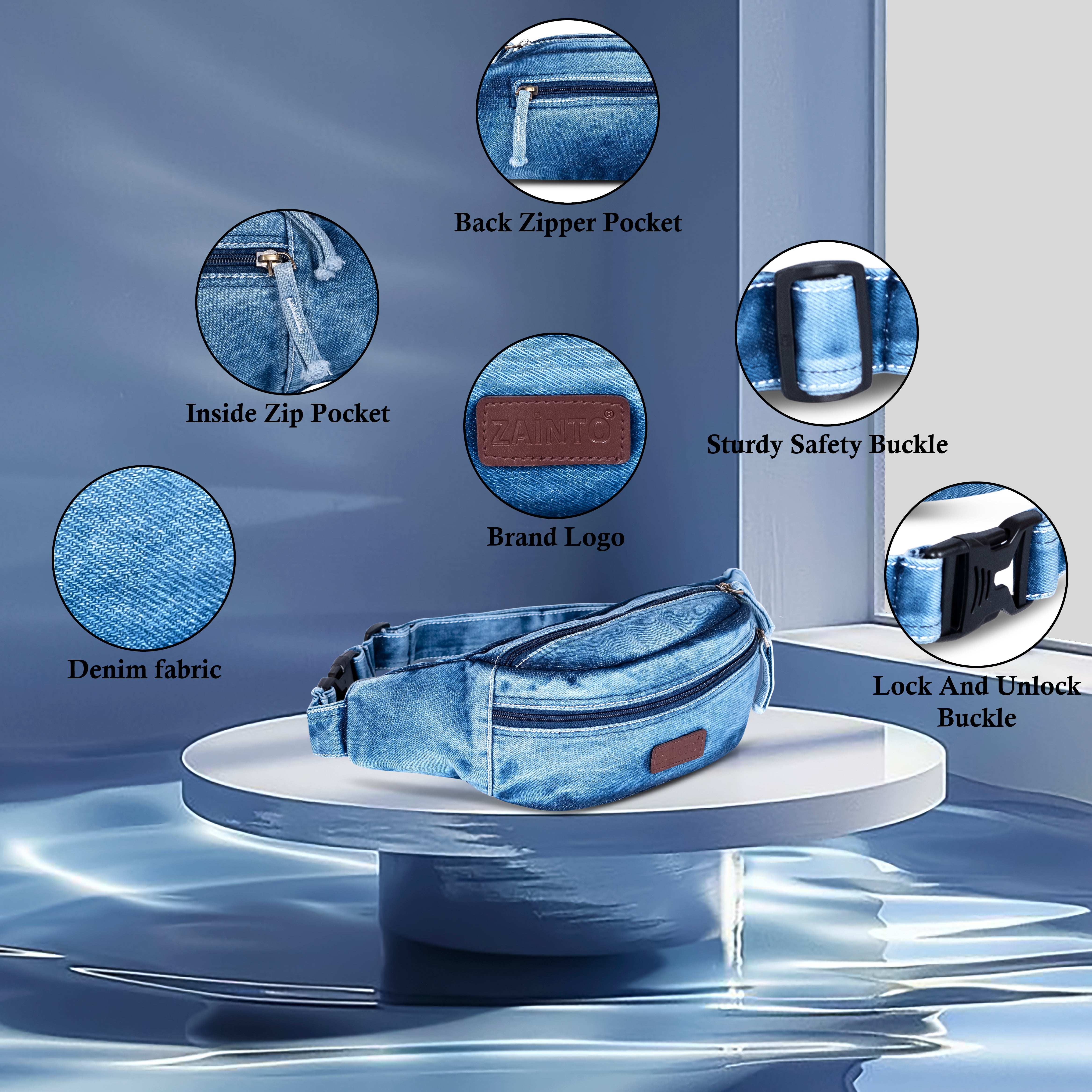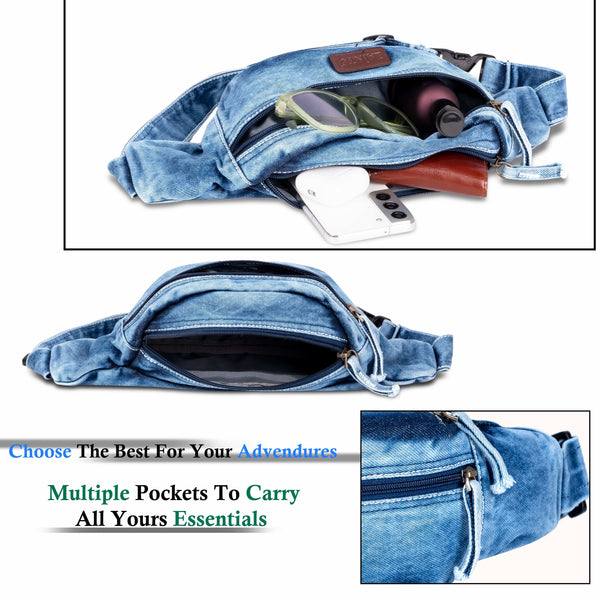 Zainto Denim Waist Bag for Men & Women - Stylish and Durable Fanny Pack for Travel, Hiking, and Everyday Use